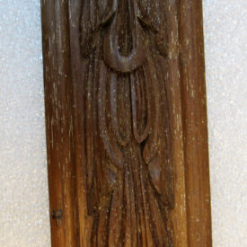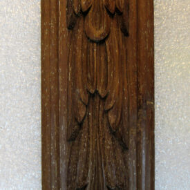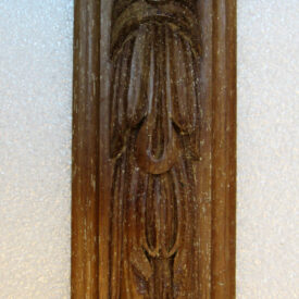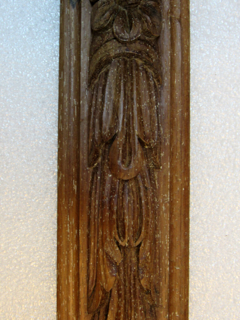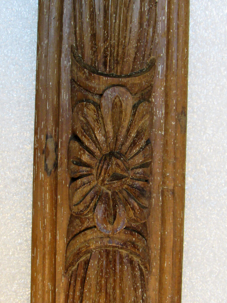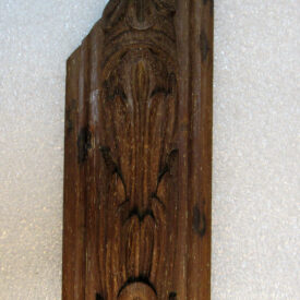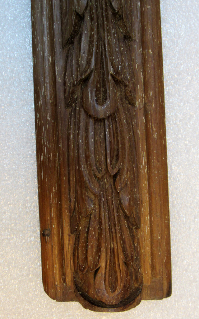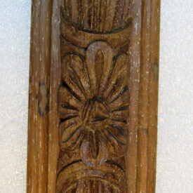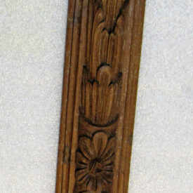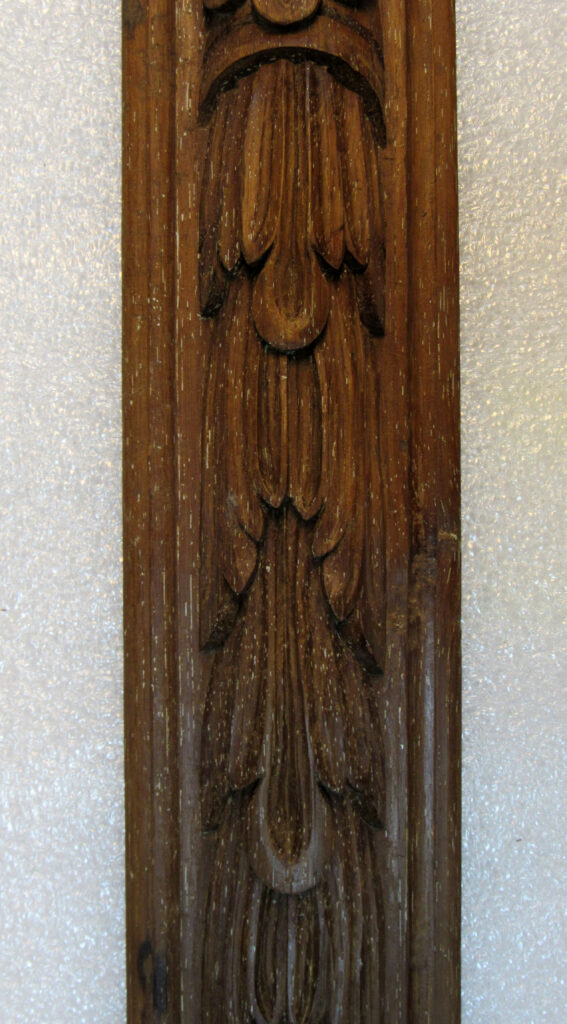 Alizar, em madeira (cedro) talhada e esculpida, sem pintura. Placa de madeira cortada no sentido longitudinal, ornada na face anterior com motivos fitomórficos esculpidos em baixo-relevo, constituindo-se a ornamentação por folhas de acanto enfeixadas no sentido vertical, entrecortadas periodicamente por uma flor de miolo circular e oito pétalas; tudo ladeado por friso relevado, à guisa de moldura.