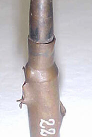 2215_001 Baixar 2215_002 Baixar 2215_001 2215_002 Número de registro2215DenominaçãoBala de arma portátil (fragmento)AutorNão identificadoFabricanteFabricante por IdentificarMarcas/InscriçõesNa extremidade posterior do cartucho, um círculo com a seguinte inscrição: DWM 1913.Classificação01 Caça e Guerra > 01.4 Munição e AcessórioAltura (cm)7.3Largura (cm)1.3Diâmetro (cm)1.1MaterialLatãoTécnicaFundiçãoTemasBrasil | Brasil República (1889- ....) | Revolução Paulista | Viagem/campanhaEstado de conservaçãoRuimLocal de produçãoAlemanha (?)Complemento - Local de produçãoEuropaData de produção1913Data de aquisição1940Instituição proprietáriaMuseu da Inconfidência (IBRAM) - Ouro Preto, Minas GeraisInstituição detentoraMuseu da Inconfidência (IBRAM) - Ouro Preto, Minas Gerais