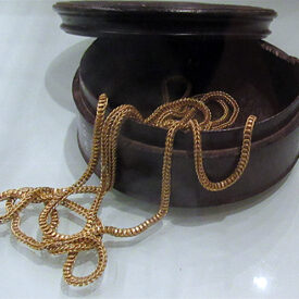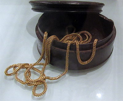 3469_001 Baixar 3469_002 Baixar 3469_003 Baixar 3469_004 Baixar 3469_005 Baixar corrente_de_leque_3469 Baixar 3469_001 3469_002 3469_003 3469_004 3469_005 corrente_de_leque_3469 Número de registro3469DenominaçãoCorrente de lequeTítuloSem títuloAutorNão identificadoFabricanteFabricante não identificadoDescriçãoCorrente de Leque, em ouro fundido. Objeto constituído por uma cadeia de aros articulados, com suas extremidades unidas por um prendedor facetado e perolado, ao qual se prende um gancho com alça articulável.Classificação12 Objetos Pessoais > 12.5 Objeto de AdornoAltura (cm)0Comprimento (cm)85.7Espessura (cm)85.7Peso (Kg)575MaterialOuroTécnicaFundiçãoTemasUsos e Costumes | VIda SocialEstado de conservaçãoBomLocal de produçãoBrasil > Minas Gerais (?)Complemento - Local de produçãoAmérica do SulData de produção[18-]Data de aquisição1971Instituição proprietáriaMuseu da Inconfidência (IBRAM) - Ouro Preto, Minas GeraisInstituição detentoraMuseu da Inconfidência (IBRAM) - Ouro Preto, Minas Gerais