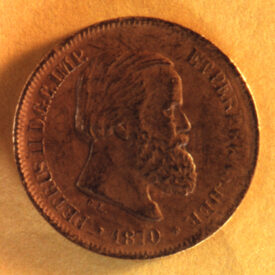 1083_001 Baixar 1083_002 Baixar 1083_003 Baixar 1083_004 Baixar 1083_005 Baixar 1083_006 Baixar 1083_001 1083_002 1083_003 1083_004 1083_005 1083_006 Número de registro1083DenominaçãoMoeda de 10 réisTítuloSem títuloAutorChristian LusterFabricanteCasa da Moeda do Rio de JaneiroMarcas/InscriçõesNo anverso, a legenda: PETRUS II D.G.C. IMP. ET PERP. BRAS. DEF. e as iniciais do gravador: C.L. No exergo, a data: 1870.No reverso, a inscrição: 10 / Rs.Classificação03 Objetos PecuniáriosDiâmetro (cm)2Peso (Kg)34MaterialBronzeTécnicaCunhagemTemasBrasil | Brasil Império (1822-1889) | Dom Pedro II (1831-1889) | HeráldicaEstado de conservaçãoBomLocal de produçãoBrasil > Rio de JaneiroComplemento - Local de produçãoAmérica do SulData de produção1870Data de aquisição1940-1946Instituição proprietáriaMuseu da Inconfidência (IBRAM) - Ouro Preto, Minas GeraisInstituição detentoraMuseu da Inconfidência (IBRAM) - Ouro Preto, Minas Gerais
