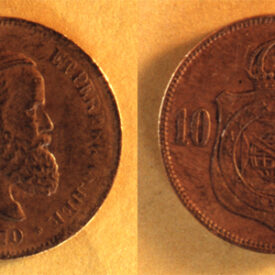 1096_001 Baixar 1096_002 Baixar 1096_003 Baixar 1096_004 Baixar 1096_005 Baixar 1096_006 Baixar 1096_001 1096_002 1096_003 1096_004 1096_005 1096_006 Número de registro1096DenominaçãoMoeda de 10 réisTítuloSem títuloAutorChristian LusterFabricanteCasa da Moeda do Rio de JaneiroMarcas/InscriçõesNo anverso, a legenda: PETRUS II D.G.C. IMP. ET PERP. BRAS. DEF. e as iniciais do gravador: C.L. No exergo, a data: 1870.No reverso, a inscrição: 10 / Rs.Classificação03 Objetos PecuniáriosDiâmetro (cm)2Peso (Kg)34MaterialBronzeTécnicaCunhagemTemasBrasil | Brasil Império (1822-1889) | Dom Pedro II (1831-1889) | HeráldicaEstado de conservaçãoBomLocal de produçãoBrasil > Rio de JaneiroComplemento - Local de produçãoAmérica do SulData de produção1870Data de aquisição1940-1946Instituição proprietáriaMuseu da Inconfidência (IBRAM) - Ouro Preto, Minas GeraisInstituição detentoraMuseu da Inconfidência (IBRAM) - Ouro Preto, Minas Gerais
