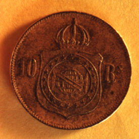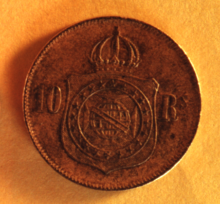 910_001 Baixar 910_002 Baixar 910_003 Baixar 910_004 Baixar 910_005 Baixar 910_006 Baixar 910_001 910_002 910_003 910_004 910_005 910_006 Número de registro910DenominaçãoMoeda de 10 réisTítuloSem títuloAutorChristian LusterFabricanteCasa da Moeda do Rio de JaneiroMarcas/InscriçõesNo anverso, a legenda: PETRUS II D.G.C. IMP. ET PERP. BRAS. DEF. e as iniciais do gravador: C.L. No exergo, a data: 1869.No reverso, a inscrição: 10 / Rs.Classificação03 Objetos PecuniáriosDiâmetro (cm)2Peso (Kg)34MaterialBronzeTécnicaCunhagemTemasBrasil | Brasil Império (1822-1889) | Dom Pedro II (1831-1889) | HeráldicaEstado de conservaçãoBomLocal de produçãoBrasil > Rio de JaneiroComplemento - Local de produçãoAmérica do SulData de produção1869Data de aquisição1940-1946Instituição proprietáriaMuseu da Inconfidência (IBRAM) - Ouro Preto, Minas GeraisInstituição detentoraMuseu da Inconfidência (IBRAM) - Ouro Preto, Minas Gerais